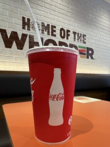 値段的にお得なのも間違いないですが、このサイズのハンバーガーを完食するためには、“BIGサイズ”量のドリンクがないと、厳しいです。