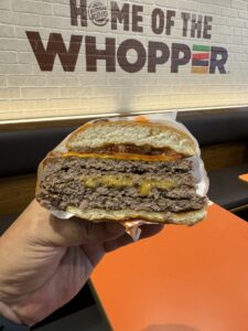 - パティ:ビーフパティが4枚重ねられており、合計で1パウンドの重量になります。このパティはバーガーキングならではの直火焼きで、ジューシーな味わいが楽しめます。