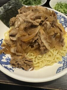 肉盛りつけ麺はちょっと味がぼんやりした感じ 次は安定の炒飯にしよう