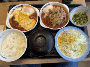 松屋の2024年夏の期間限定「うまトマハンバーグについて、基本のうまトマハンバーグ定食は間違いなく美味しいのですが、さらにアレンジを加えた、チーズうまトマハンバーグ定食と牛肉のあいがけうまトマハンバーグ定食について実食レポートします。