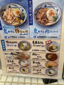 どちらも夏の丸亀製麺の人気メニューですが、鬼おろし肉ぶっかけは、鬼おろしの爽快感と肉の甘みが絶妙で完成された夏のメニューと言えます。