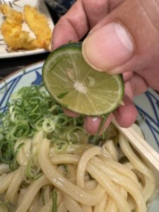 とはいえ、ライムを絞って、おろしと一緒に食べれば、辛さと爽快感が相まって、夏にぴったりの冷たいうどんです。
